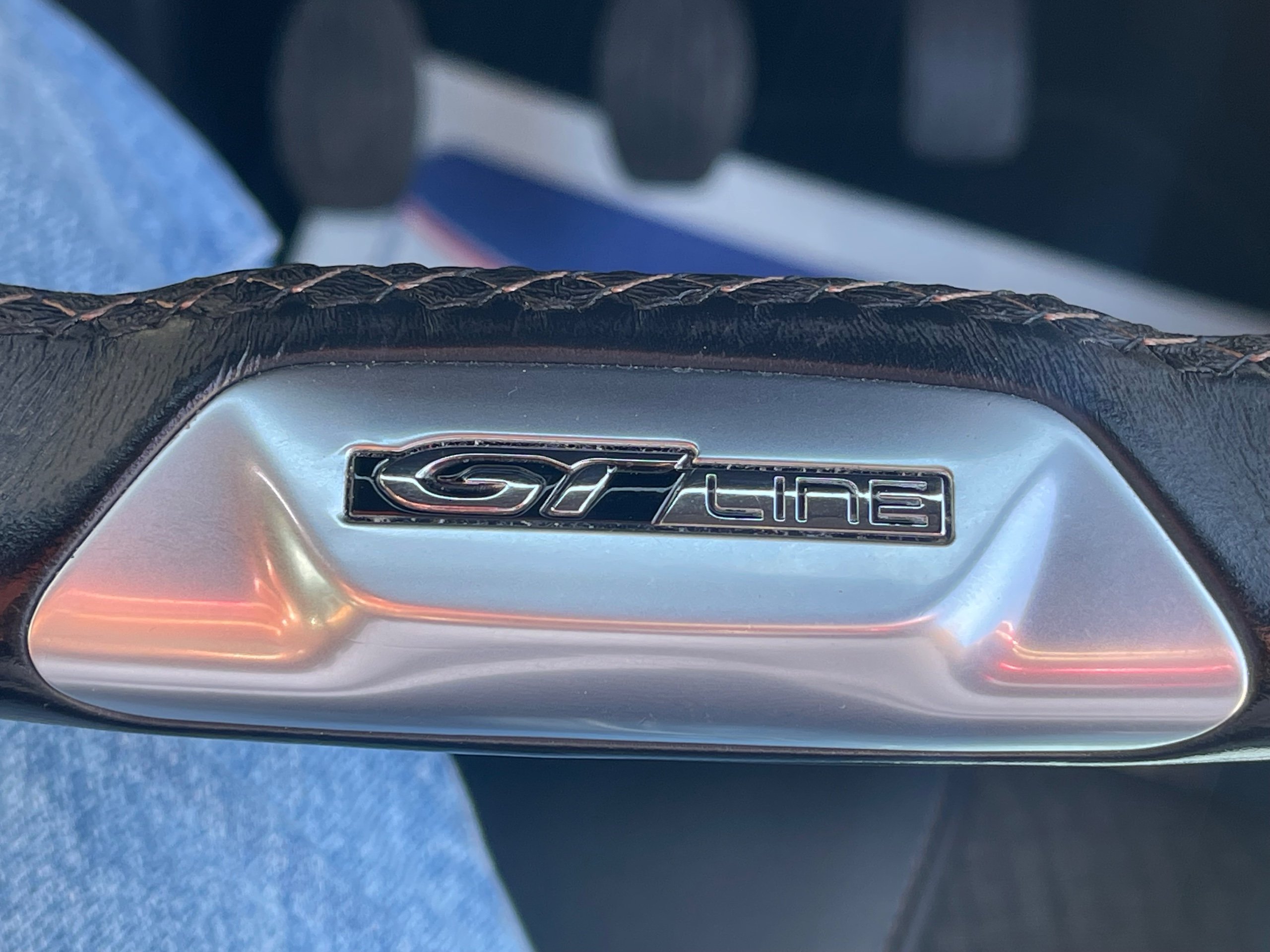 - Mistral Full-Grain Perforated Leather Steering Wheel with Aikinite Stitch Detail and Satin Chrome GT Line Emblem